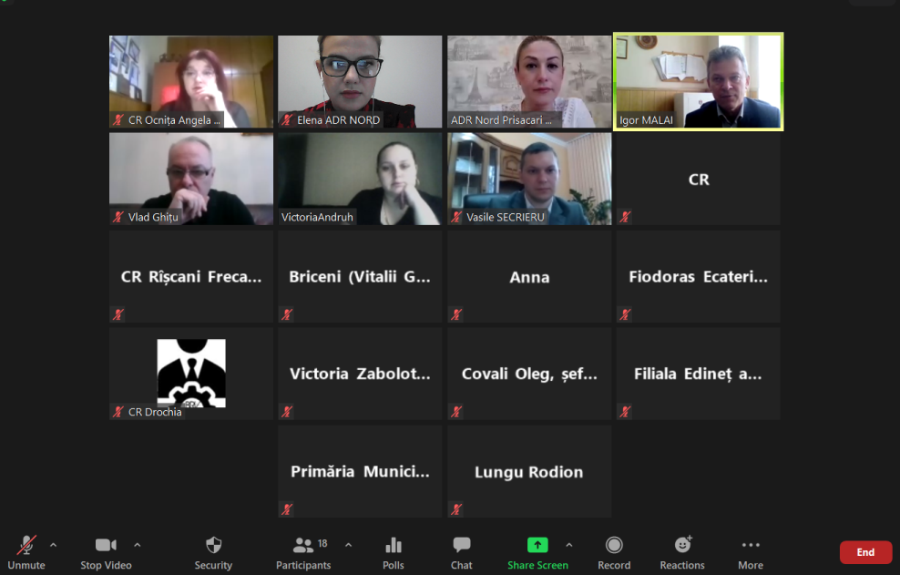 Membrii grupului de lucru (GL) în domeniul Dezvoltare urbană / Revitalizare urbană, din care fac parte membri ai Consiliului Regional pentru Dezvoltare (CRD) Nord, s-au întrunit, în perioada 2-6 aprilie 2021, în cadrul a două sesiuni online pentru a dezvolta împreună un concept de proiect specific domeniului. În cadrul primei întruniri online, care a avut loc în data de 2 aprilie a.c., Igor Malai, expert în domeniul dezvoltării urbane/revitalizarea urbană, a prezentat procesul de dezvoltare urbană / revitalizarea urbană în Republica Moldova, precum și documentele de politici la nivel național. Totodată, expertul s-a referit la experiența Poloniei în acest domeniu și a trecut în revistă bunele practici ale orașelor din Republica Moldova, implicate în procesul de revitalizare urbană, referindu-se în mod special la situația Regiunii de Dezvoltare Nord în domeniu. Reuniți într-un grup de lucru și ghidați de expertul Igor Malai, participanții la întrunirea online, printre care și președintele CRD Nord, Vasile Secrieru, au elaborat arborele problemei. Ulterior, în cadrul unui brainstorming, ei au selectat probleme și idei comune pentru elaborarea unui concept de proiect. La cea de-a doua sesiune a grupului de lucru, care a avut loc în data de 6 aprilie a.c., participanții au fost implicați, în mare parte, în activități practice. Cu această ocazie, ghidați de experta Veronica Savin, membrii GL au formulat obiectivele conceptului de proiect, au identificat grupurile-țintă și a beneficiarii proiectului, au stabilit acțiunile/activitățile conceptului de proiect și au setat produsele/rezultatele acestuia. Implicată în lucrările acestui GL, șefa ADR Nord, Maria Prisacari, i-a încurajat pe participanți să contribuie plenar în activitățile planificate, întrucât de acest lucru depinde calitatea conceptului de proiect și șansele acestuia de a obține finanțare și a fi implementat cu succes în una dintre localitățile urbane din regiune. Din GL în domeniul Dezvoltare urbană / Revitalizare urbană fac parte 12 membri ai CRD Nord. Activitățile în care sunt implicați membrii acestui GL se desfășoară în contextul proiectului „Suport pentru Consiliul Regional pentru Dezvoltare din Regiunea de Dezvoltare Nord”, finanțat de Guvernul Germaniei prin intermediul proiectului „Modernizarea Serviciilor Publice Locale în Republica Moldova” (MSPL), implementat de GIZ Moldova. În Regiunea de Dezvoltare Nord, în cadrul aceluiași proiect, au mai fost create două GL, din care fac parte membri ai CRD Nord: în domeniul Aprovizionare cu apă și canalizare și în domeniul Sporirea atractivității turistice.