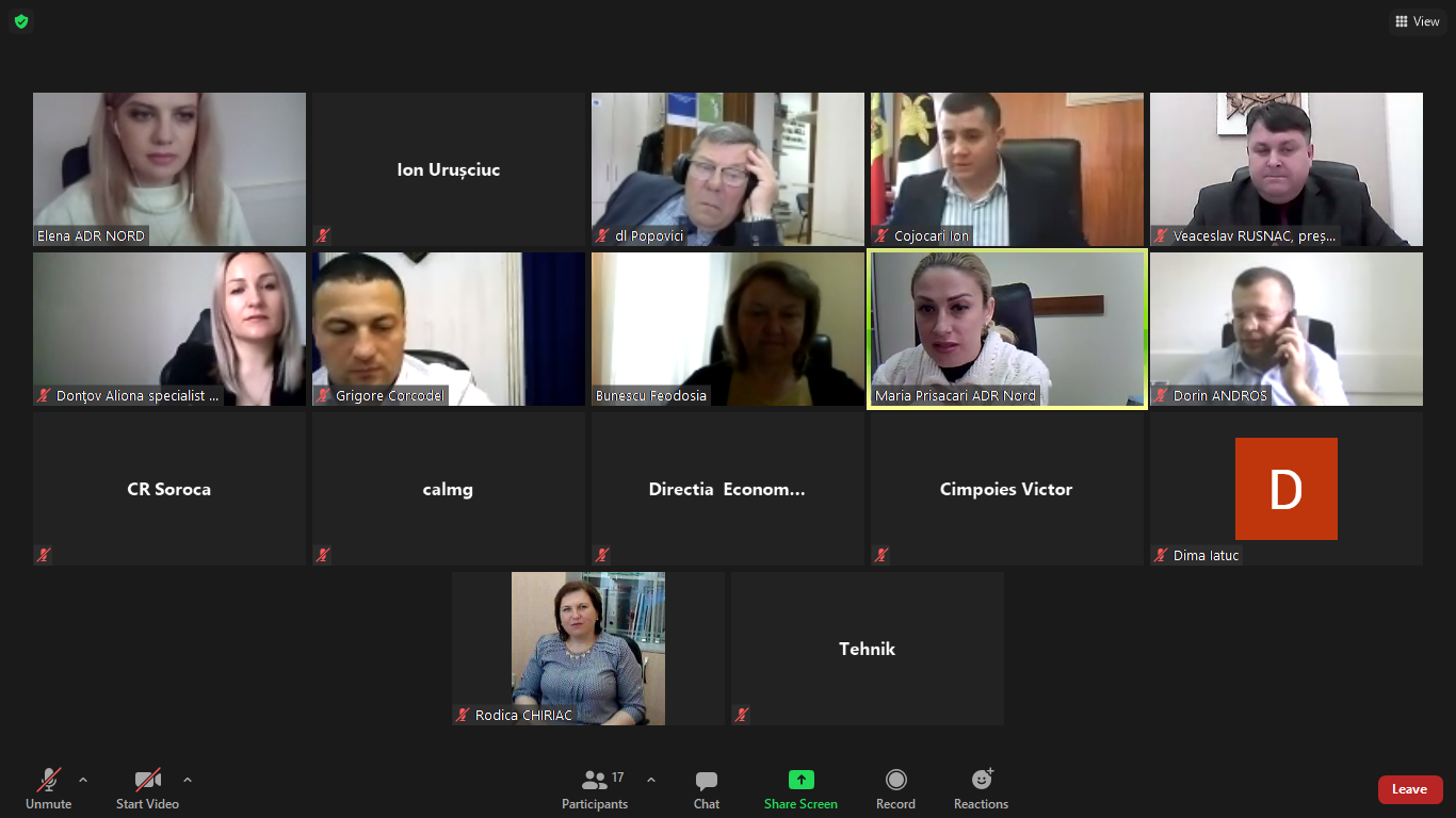 Membrii grupului de lucru (GL) în domeniul Aprovizionare cu apă și canalizare (AAC), din care fac parte membri ai Consiliului Regional pentru Dezvoltare (CRD) Nord, s-au întrunit în cadrul a două sesiuni online pentru a selecta și a dezvolta împreună un concept de proiect specific domeniului. În cadrul primei întruniri online, care a avut loc în data de 16 aprilie a.c., Dorin Andros, expert în domeniul AAC, a prezentat cadrul legislativ și cadrul instituțional în sector, precum și situația actuală atât la nivel național, cât și la nivelul Regiunii de Dezvoltare Nord în domeniul Aprovizionare cu apă și canalizare. În context, șefa ADR Nord, Maria Prisacari, i-a încurajat pe participanți să conlucreze activ în cadrul activităților planificate, întrucât de acest lucru depinde calitatea conceptului de proiect și șansele acestuia de a obține finanțare și de a fi implementat cu succes. Reuniți într-un grup de lucru și ghidați de expertul Dorin Andros, participanții la întrunirea online, printre care și președinții raioanelor Glodeni, Sângerei și Soroca, au elaborat arborele problemei. Ulterior, în cadrul unui brainstorming, participanții la întrunirea online au selectat probleme și idei comune pentru elaborarea unui concept de proiect. De asemenea, ei au pus în discuție un șir de inițiative anterioare și au argumentat necesitatea continuității acestora. Totodată, în baza conceptului de proiect „Construcția aducțiunii de conectare la apeductul magistral Soroca-Bălți a localităților din raioanele Drochia și Dondușeni” selectat, membrii grupului de lucru au formulat obiective, au identificat grupurile-țintă și beneficiarii proiectului, au stabilit un și de acțiuni/activități în cadrul conceptului de proiect, au setat produsele/rezultatele acestuia și au identificat acțiuni pentru asigurarea durabilității proiectului. La cea de-a doua sesiune a grupului de lucru, care a avut loc în data de 20 aprilie a.c., participanții au fost implicați, în mare parte, în activități practice începute în timpul sesiunii precedente. Din GL în domeniul Aprovizionare cu apă și canalizare fac parte 8 membri ai CRD Nord. Activitățile în care sunt implicați membrii acestui GL se desfășoară în contextul proiectului „Suport pentru Consiliul Regional pentru Dezvoltare din Regiunea de Dezvoltare Nord”, finanțat de Guvernul Germaniei prin intermediul proiectului „Modernizarea Serviciilor Publice Locale în Republica Moldova” (MSPL), implementat de GIZ Moldova. În Regiunea de Dezvoltare Nord, în cadrul aceluiași proiect, au mai fost create două GL, din care fac parte membri ai CRD Nord: în domeniul Dezvoltarea urbană / Revitalizarea urbană și în domeniul Sporirea atractivității turistice.