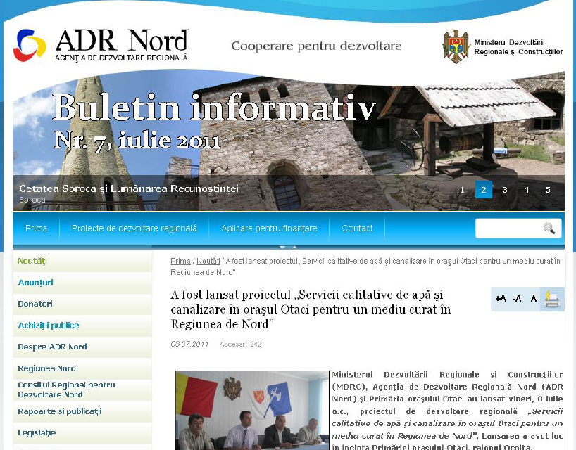 Agenția de Dezvoltare Regională Nord (ADR Nord) a elaborat Buletinul informativ nr. 7 / iulie 2011. Buletinul, atașat mai jos, este o sinteză a activităților Agenției în luna iulie a.c. ADR Nord a difuzat, în format electronic, nr. 7 al Buletinului informativ membrilor CNDR, CRD, angajaților MDRC, ONG-urilor, societății civile, partenerilor de dezvoltare și mass-mediei.