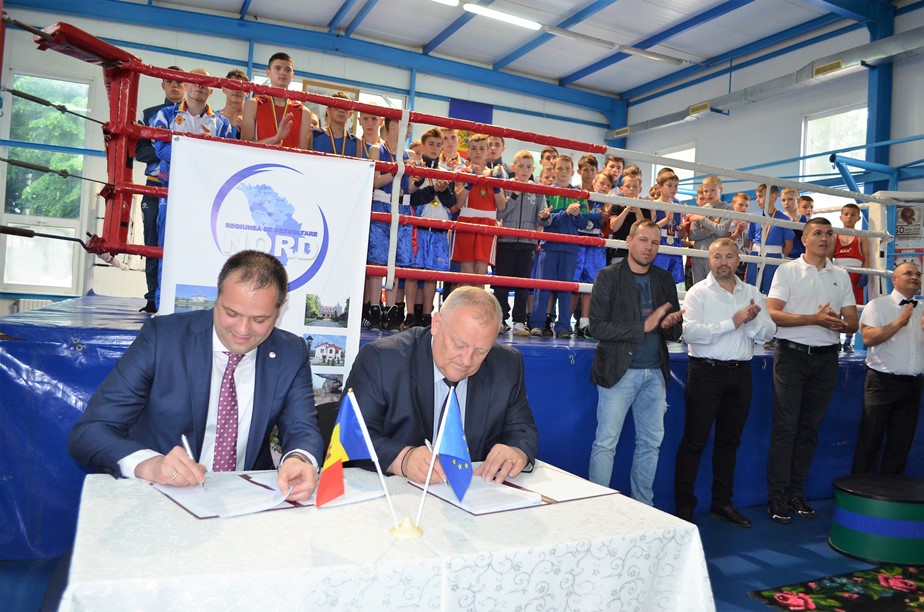 Ceremonia de semnare a contractului de finanțare în cadrul proiectului „Asigurarea eficienței energetice a clădirii Școlii-internat sportive din satul Grimăncăuți, raionul Briceni" a avut loc vineri, 26 mai, în incinta Școlii-internat sportive din satul Grimăncăuți. Documentul a fost semnat de către directorul ADR Nord, Ion Bodrug, și președintele Consiliului raional Briceni, Mihail Gnatiuc, în cadrul unui campionat de box organizat în incinta instituției sportive. Prin realizarea acestui proiect se urmărește crearea condiţiilor optime pentru tinerii sportivi în cadrul Școlii-internat sportive din satul Grimăncăuți, utilizând tehnologii energo-eficiente. Acest proiect va contribui la reducerea consumului de energie termică a instituției, prin renovare şi termoizolare. Totodată, prin instalarea sistemelor electrice, de iluminare, încălzire şi ventilare moderne vor fi reduse cheltuielile operaţionale pentru întreținerea clădirii. Conform cererii de finanțare, valoarea totală a proiectului este de 6.191.550 de lei. Consiliul Național de Coordonare a Dezvoltării Regionale (CNCDR) a aprobat alocarea a 3.000.000 de lei pentru lucrările ce urmează a fi efectuate pe parcursul anului 2017. Lucrările în cadrul proiectului urmează a fi realizate în decurs de 12 luni. |