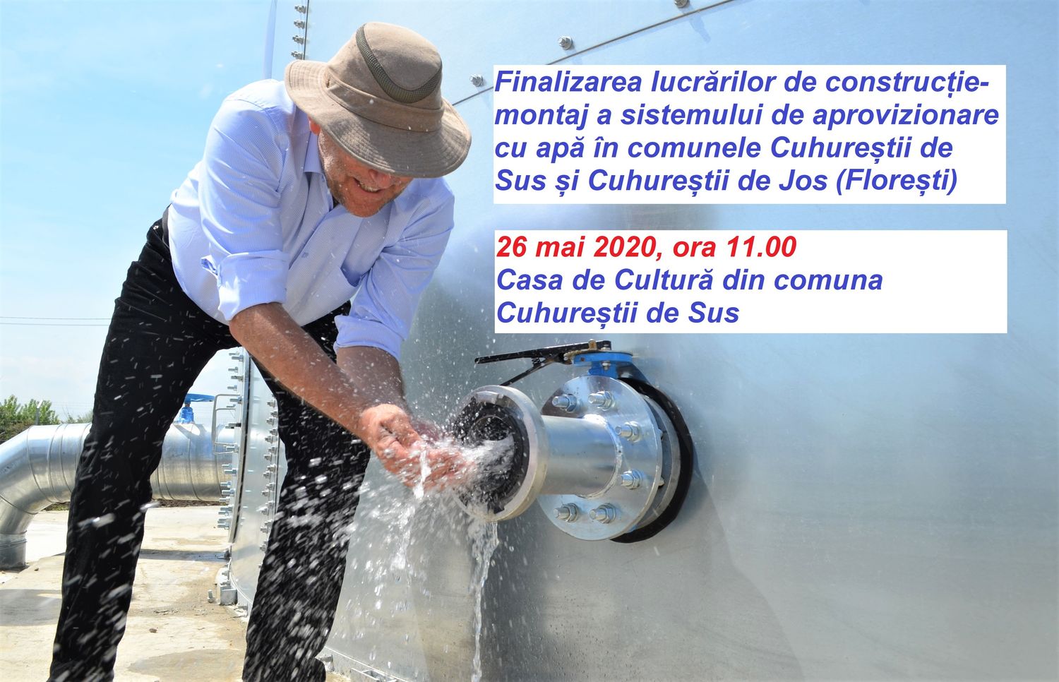 Prima - Noutăți - INVITAȚIE PENTRU JURNALIȘTI. Finalizarea lucrărilor de construcție-montaj a sistemului de aprovizionare cu apă în comunele Cuhureștii de Sus și Cuhureștii de Jos