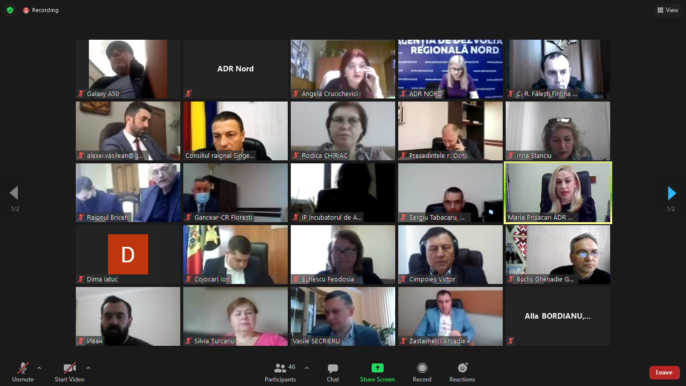 Membrii Consiliului Regional pentru Dezvoltare (CRD) Nord au aprobat marți, 27 aprilie a.c., în cadrul celei de-a doua ședințe ordinare din acest an, lista cererilor de finanțare pentru proiectele selectate în cadrul Apelului competitiv a proiectelor de dezvoltare regională pentru perioada 2021-2023, cu finanțare din Fondul Național pentru Dezvoltare Regională (FNDR), propuse spre includere în Programul Operațional Regional (POR) Nord 2021-2023. La ședința CRD Nord au participat șeful Secției relații cu instituțiile de dezvoltare regională a MADRM, Sergiu Tăbăcaru, 39 din cei 45 de membri actuali ai CRD Nord, specialiști din cadrul ADR Nord, consultanți și experți din cadrul proiectului „Modernizarea Serviciilor Publice Locale în Republica Moldova” (MSPL), implementat de GIZ Moldova. Ședința a fost prezidată de către președintele CRD Nord, Vasile Secrieru. În debutul ședinței, șeful Secției relații cu instituțiile de dezvoltare regională a MADRM, Sergiu Tăbăcaru, a subliniat importanța subiectelor incluse în agenda actualei ședințe a CRD Nord. Funcționarul a încurajat implicarea membrilor CRD Nord în procesul de realizare a politicii de dezvoltare regională, buna conlucrare a acestora cu ADR Nord fiind capabilă să genereze idei și rezultate scontate în procesul de dezvoltare a regiunii. La rândul său, președintele CRD Nord, Vasile Secrieru, a mulțumit membrilor CRD Nord pentru interesul sporit față de subiectele puse în discuție în cadrul ședinței, subiecte ce vor marca parcursul de dezvoltare pentru municipiul Bălți și cele 11 raioane din Regiunea de Dezvoltare Nord a Republicii Moldova, și a mulțumit experților implicați în procesele de evaluare tehnică și financiară a cererilor de finanțare depuse în cadrul Apelului competitiv. Lucrările ședinței CRD Nord au început cu prezentarea rezultatelor evaluării cererilor de finanțare depuse în cadrul Apelului competitiv. În acest context, directorul ADR Nord, Maria Prisacari, a amintit că, în Etapa I a Apelului, au fost evaluate administrativ 22 dosare depuse la concurs. În Etapa II a concursului, patru experți au evaluat, pe domenii separate, dosarele depuse și au elaborat rapoarte de evaluare tehnică și financiară pentru toate cele 22 de cereri complete de finanțare. În cadrul ședinței, membrii CRD Nord au aprobat pragul de acces (75 de puncte) pentru cererile de finanțare în următoarea etapă, în raport cu punctajul acumulat. Următoarea etapă presupune evaluarea cererilor complete de finanțare de către membrii unei comisii interministeriale. În cele din urmă, proiectele selectate vor fi înaintate spre aprobare Consiliului Național de Coordonare a Dezvoltării Regionale, după care acestea urmează să fie aprobate și incluse în Documentul Unic de Program (DUP), prin Hotărâre de Guvern. Atât proiectele incluse în DUP, inclusiv cele aprobate spre finanțare din sursele FNDR, cât și alte proiecte, care pot să obțină finanțare din alte surse, se vor regăsi în Programul Operațional Regional Nord. În cadrul aceleiași ședințe, specialiștii ADR Nord în colaborare cu consultanții regionali GIZ Moldova le-au prezentat participanților la întrunirea online Ghidul membrului CRD Nord. Totodată, membrilor CRD Nord li s-a prezentat studiul „Situația Organizațiilor Societății Civile din Regiunea de Dezvoltare Nord” și au luat act de progresul în implementarea proiectului „Suport pentru Consiliul Regional pentru Dezvoltare din Regiunea de Dezvoltare Nord”. Ședința de constituire a CRD Nord de legislatura a IV-a a avut loc în data de 21 ianuarie 2020, la Bălți. CRD Nord este o structură regională deliberativă, fără personalitate juridică, constituită în vederea elaborării, coordonării și monitorizării politicii de dezvoltare regională la nivelul Regiunii de Dezvoltare Nord, în componența căreia intră municipiul Bălți și raioanele Briceni, Dondușeni, Drochia, Edineț, Fălești, Florești, Glodeni, Ocnița, Râșcani, Sângerei și Soroca. CRD Nord are 48 de membri: cei 11 președinți de raioane, primarul municipiului Bălți și câte un reprezentant al asociațiilor de primari, societății civile și sectorului privat din fiecare raion și municipiu al regiunii. Membrii CRD Nord își exercită atribuțiile cu titlu gratuit. Mai multe detalii despre CRD Nord se găsesc AICI.