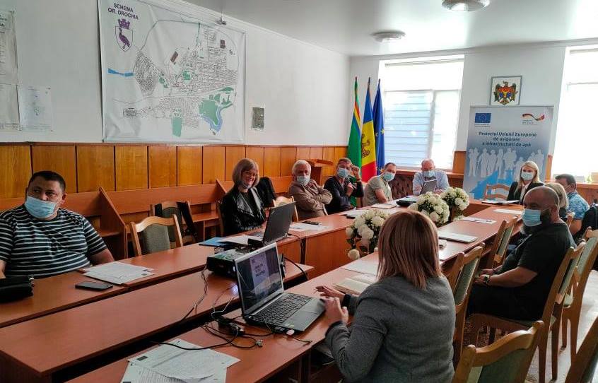 Prima - Noutăți - Membrii Comitetului director local al proiectului „Îmbunătățirea serviciilor de alimentare cu apă și sanitație în orașul Drochia”, finanțat de UE, s-au întrunit în ședință