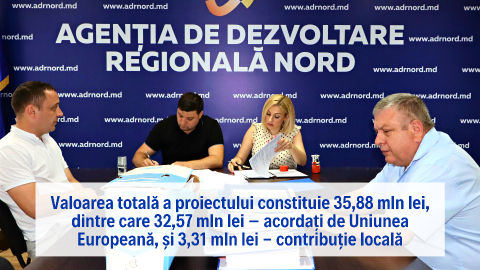 ADR Nord a transmis Primăriei orașului Fălești setul de documente ce atestă costul investițional al bunurilor și serviciilor achiziționate din sursele Uniunii Europene în cadrul unui proiect de îmbunătățire a serviciilor de alimentare cu apă în orașul Fălești, implementat de Agenție în perioada 2020-2022. Evenimentul a avut loc luni, 13 iunie 2022, în incinta ADR Nord. Actele au fost semnate de către directorul ADR Nord, Maria Prisacari, și primarul orașului Fălești, Alexandr Severin. Valoarea totală a proiectului constituie 35,88 mln lei, dintre care 32,57 mln lei – acordați de UE, și 3,31 mln lei – contribuție locală. Circa 16.500 de locuitori ai orașului Fălești beneficiază de servicii modernizate de alimentare cu apă potabilă. Măsura investițională și „Îmbunătățirea serviciilor de alimentare cu apă în orașul Fălești” a fost finanțată de Uniunea Europeană și implementată de ADR Nord și proiectul „Modernizarea Serviciilor Publice Locale în Republica Moldova" (MSPL). Proiectul MSPL este finanțat de Ministerul German pentru Cooperare Economică și Dezvoltare (BMZ) și implementat de GIZ Moldova în parteneriat cu Ministerul Infrastructurii și Dezvoltării Regionale al Republicii Moldova. #EU4Moldova #ÎmpreunăMaiPuternici #EchipaEuropa