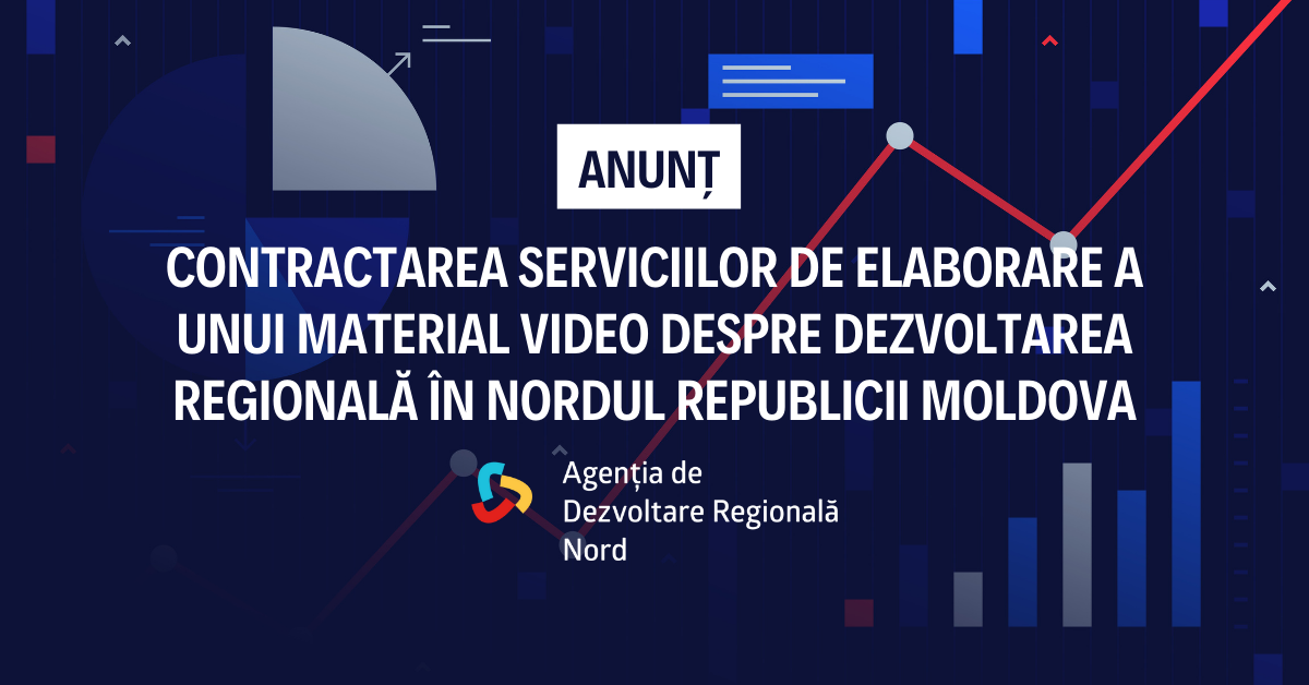 ADR Nord anunță concurs pentru contractarea serviciilor de elaborare a unui material video cu durata între 5 și 7 minute despre dezvoltarea regională în nordul Republicii Moldova. Concursul se desfășoară în cadrul proiectului de susținere a Regiunii de Dezvoltare Nord ca răspuns la situațiile de urgență, implementat de ADR Nord și finanțat de Ministerul Federal German pentru Cooperare Economică și Dezvoltare (BMZ) prin intermediul proiectului „Modernizarea Serviciilor Publice Locale în RM”. Termen pentru prezentarea ofertelor: 25 octombrie 2022, ora 12:00. Detalii se găsesc în fișierul anexat.