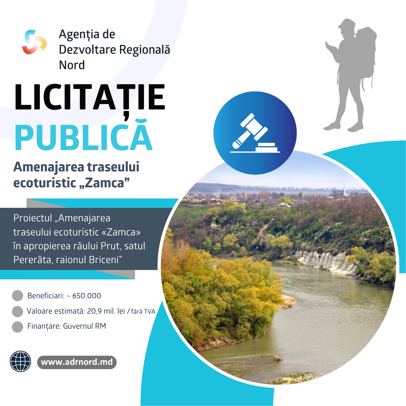 Agenția de Dezvoltare Regională Nord a lansat procedura de licitație publică pentru executarea lucrărilor de construcții în cadrul proiectului „Amenajarea traseului ecoturistic «Zamca» în apropierea râului Prut, satul Pererâta, raionul Briceni”. Proiectul prevede crearea și diversificarea serviciilor turistice din zona peisagistică naturală „Zamca”, în vederea creșterii atractivității turistice a Regiunii de Dezvoltare Nord. În acest sens, sunt planificate o serie de lucrări pentru crearea infrastructurii turistice de cazare și de agrement, precum și amenajarea căilor de acces. De investiția în valorificarea traseului ecoturistic „Zamca” vor beneficia nu doar locuitorii satului Pererâta și ai raionului Briceni, dar și cei peste 644 de mii de cetățeni care locuiesc în Regiunea de Dezvoltare Nord. De asemenea, printre beneficiarii proiectului se numără peste 20 de mii de turiști din alte regiuni ale țării și de peste hotare. Valoarea totală a lucrărilor de construcții a fost estimată la 20.919.580 MDL, fără TVA. Proiectul este finanțat de Guvernul Republicii Moldova, prin Fondul Național pentru Dezvoltare Regională și Locală, cofinanțat de Consiliul Raional Briceni și implementat de Agenția de Dezvoltare Regională Nord. Perioada clarificărilor: 30 septembrie 2025, 18:40 – 13 octombrie 2025, 12:00 Perioada de depunere a ofertelor: 13 octombrie 2025, 12:00 – 24 octombrie 2025, 11:00 Criteriu de atribuire: Prețul cel mai scăzut. |