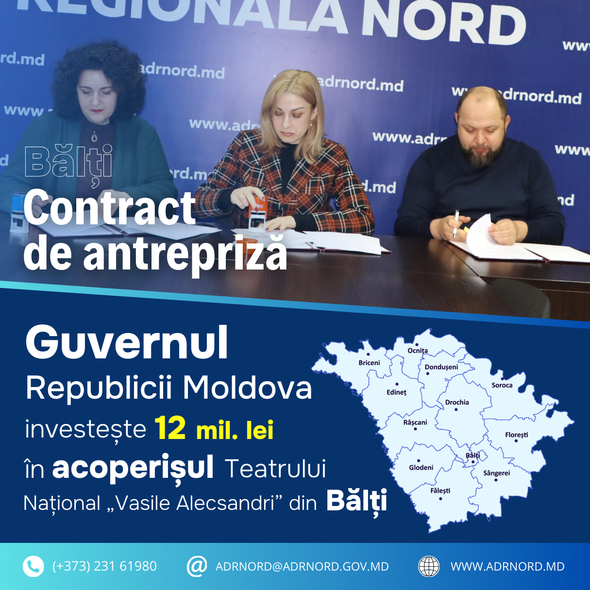 Angajații și vizitatorii Teatrului Național de Stat „Vasile Alecsandri” din municipiul Bălți vor beneficia de condiții îmbunătățite pentru activități culturale, odată cu demararea lucrărilor de reparație capitală a acoperișului edificiului – monument de arhitectură de importanță națională și singurul teatru cu statut național din nordul țării. Proiectul „Salvgardarea monumentului arhitectural de importanță națională Teatrul Național de Stat «Vasile Alecsandri» din municipiul Bălți” este finanțat de Guvernul Republicii Moldova, prin Fondul Național pentru Dezvoltare Regională și Locală, și implementat de Agenția de Dezvoltare Regională (ADR) Nord. Totodată, proiectul este cofinanțat de Teatrul din Bălți. În cadrul proiectului va fi realizată reparația capitală a acoperișului teatrului, cu o suprafață totală de 4.171 mp. Lucrările vor fi executate în baza unui contract de antrepriză semnat luni, 26 ianuarie, la Bălți, între ADR Nord, SRL „Igostaff Construct” și IP Teatrul Național de Stat „Vasile Alecsandri”, având o valoare de 12,05 mil. lei. De rezultatele acestei investiții vor beneficia direct cei 104 angajați ai instituției teatrale, precum și aproximativ 34 de mii de spectatori anuali, iar pe termen lung – locuitorii municipiului Bălți, ai localităților învecinate și agenții economici din regiune. Implementarea proiectului este o contribuție la protejarea clădirii și la crearea unui mediu sigur și funcțional pentru desfășurarea spectacolelor și activităților culturale. Este de așteptat că investiția va spori accesul populației la servicii culturale, estimându-se o majorare a numărului de beneficiari cu circa 5%. Acest proiect a fost depus de ADR Nord la Concursul de selectare a proiectelor de dezvoltare pentru centrele urbane (ediția aprilie 2025), în cadrul apelului pe listă, desfășurat de Ministerul Infrastructurii și Dezvoltării Regionale. Proiectul este implementat în contextul Programului Național de accelerare a dezvoltării municipiului Bălți în calitate de pol de dezvoltare pentru anii 2024-2028. Prin astfel de proiecte, Guvernul Republicii Moldova urmărește să stimuleze dezvoltarea economică sustenabilă și incluzivă a orașelor-poli de creștere și a orașelor-poli de dezvoltare. Orașele sunt esențiale pentru evoluția social-economică a Republicii Moldova. Experiența internațională demonstrează că, prin orașe regionale puternice, o țară poate avea regiuni dezvoltate și o economie națională robustă. |