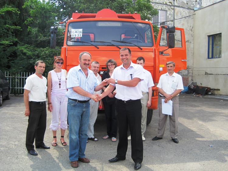 A special vehicle "KAMAZ" came Wednesday, June 22, in the city of Biruința, being distributed according to the plan provided for the "Completion of construction to build polygon, sorting and recovery of household waste for the three municipalities (7 locations) cities of Biruința, Alexăndreni (villages: Alexăndreni, Old Heciul, Grigorești, Tîplești, Å¢îpletești), New Heciul" project implemented by the Northern Regional Development Agency.
