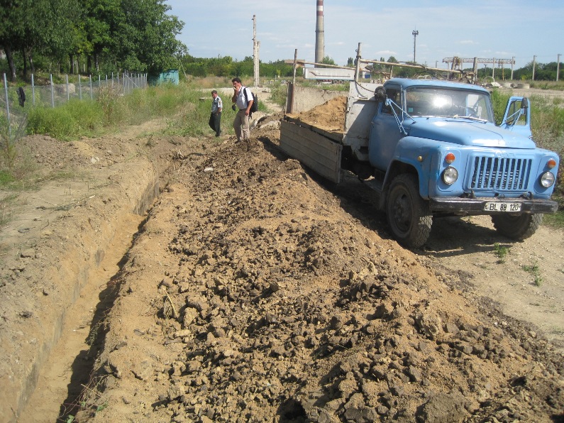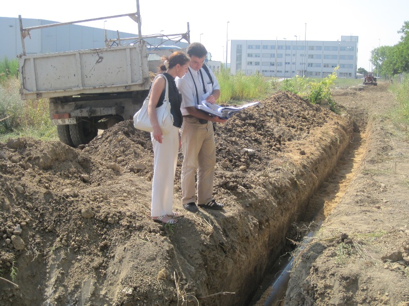 During the visit, representatives of RDA North checked the performance of work according to the schedule of execution. Thus, concealed water pipes of a length of 200 meters of external water was found. According to local estimate, Chapter 2-26, pipe pressure polyethylene was installed, high density, for water supply, with a diameter of 225 millimeters. So far, the main problem is the high temperatures and soil density (the ground was still pressed in Soviet times, when the factory "Selimaș" was located on this site). For these reasons, Excavators overheat and in one day it is only possible to do a maximum length of 25-30 meters.