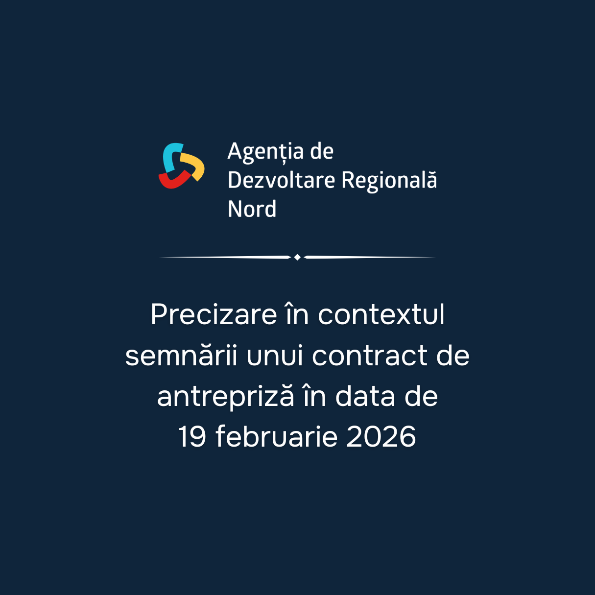 În contextul semnării, în data de 19 februarie 2026, a contractului de antrepriză nr. 355/L cu operatorul economic SC „Foremcons” SRL privind executarea lucrărilor de finalizare și punerea în funcțiune a sistemului de apeduct Prut-Fălești, în cadrul proiectului „Finalizarea și punerea în funcțiune a sistemului de apeduct Prut-Fălești”, Agenția de Dezvoltare Regională Nord comunică următoarele: Contractul a fost semnat ca urmare a desfășurării procedurii de licitație deschisă din data de 30 decembrie 2025, organizată cu respectarea prevederilor legale în vigoare. În cadrul procedurii au depus oferte patru operatori economici: